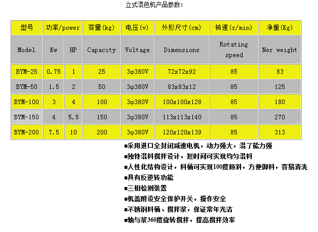 立式混色機(jī)特點(diǎn):